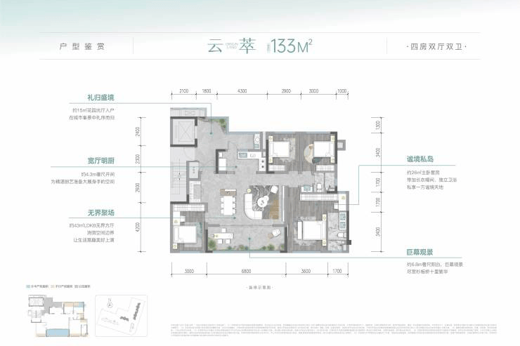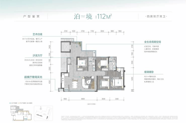 超高得房率让实际使用率超过100%,建面约112㎡就能享受到4房大方厅;