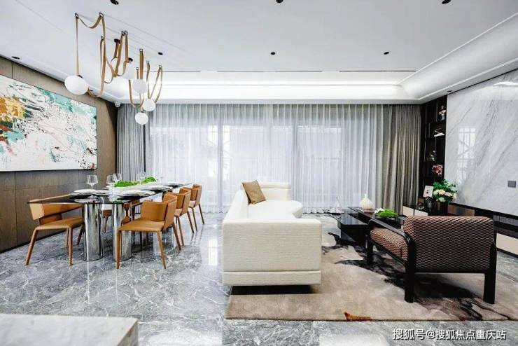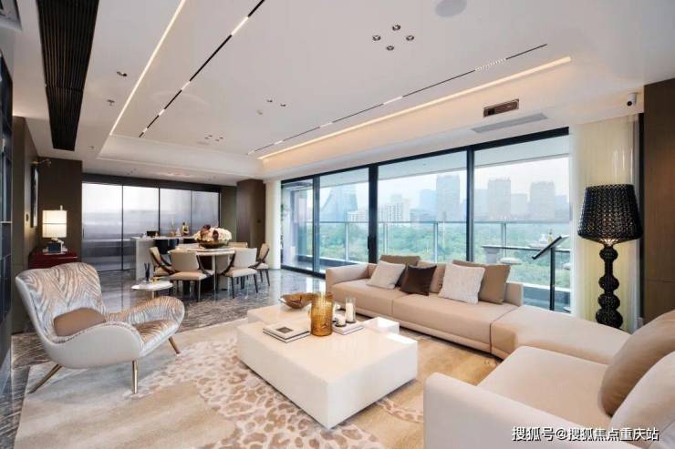 豪奢外立面:上海柏涛设计团队操刀,采用玻璃搭配铝板,天然石材外立面,极简的里面勾勒出线条的硬朗,历久弥新。约60%-70%的玻璃幕墙占比让住宅与江湾融为一体,天光与波光在此交映。