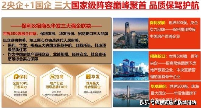 保利中央公馆由保利发展、招商蛇口、华发股份三大世界 500 强房企联合打造,汇聚央企、国企的雄厚实力与匠心传承。