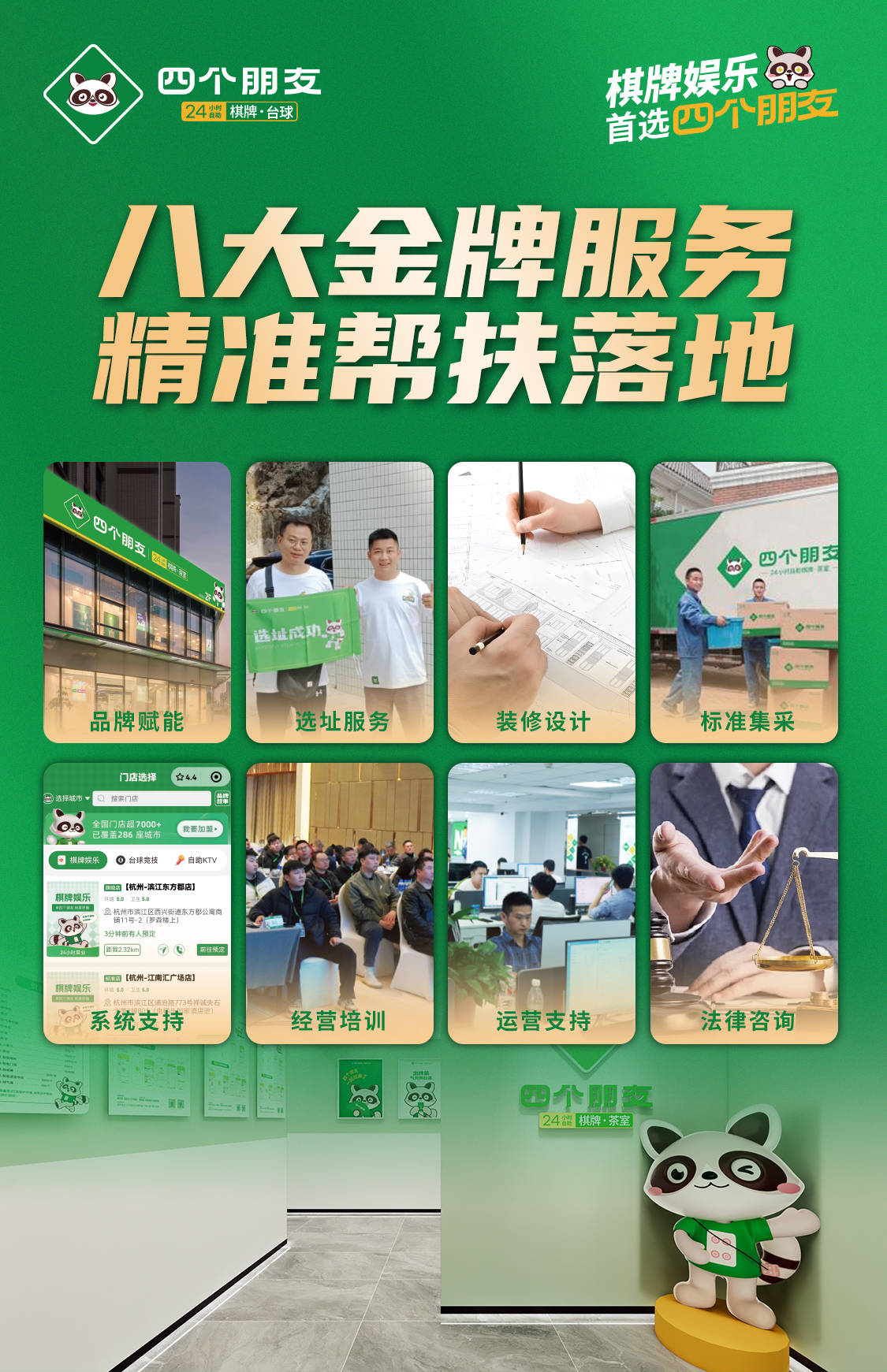 随着休闲娱乐行业的升级,自助棋牌室作为传统棋牌行业的革新者,在近年来迅速崛起。其中,“四个朋友自助棋牌”品牌以其全国超10000家门店的规模,成为行业瞩目的焦点。