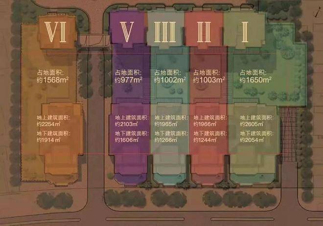 【公园央墅】一共有五套,其中东套为独立式,其他四套为连体式,每套面积在3634-5354平米,层高4.5米。