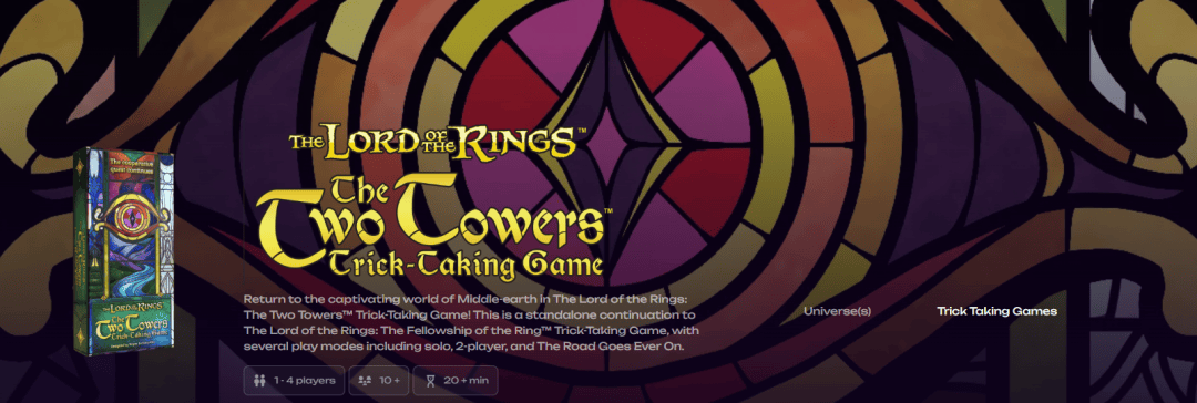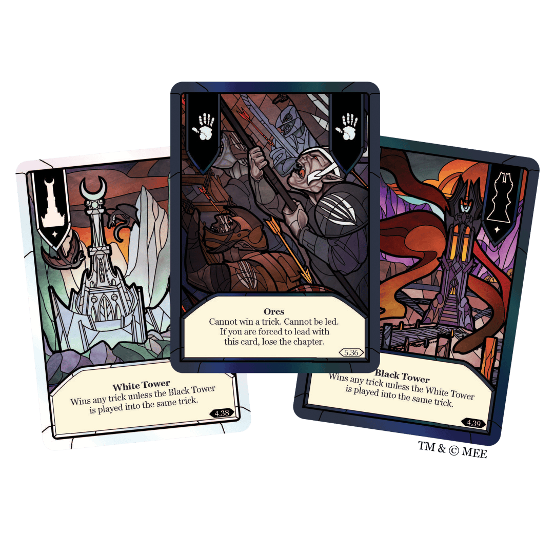 大幅度借鉴【彩色玻璃窗】的卡牌设计风格巧妙还原了《魔戒》原著中魅力四射的旅程,连同包含类似闪卡工艺的外盒一起成为《魔戒》主题游戏中一款不容忽视的闪亮之星~