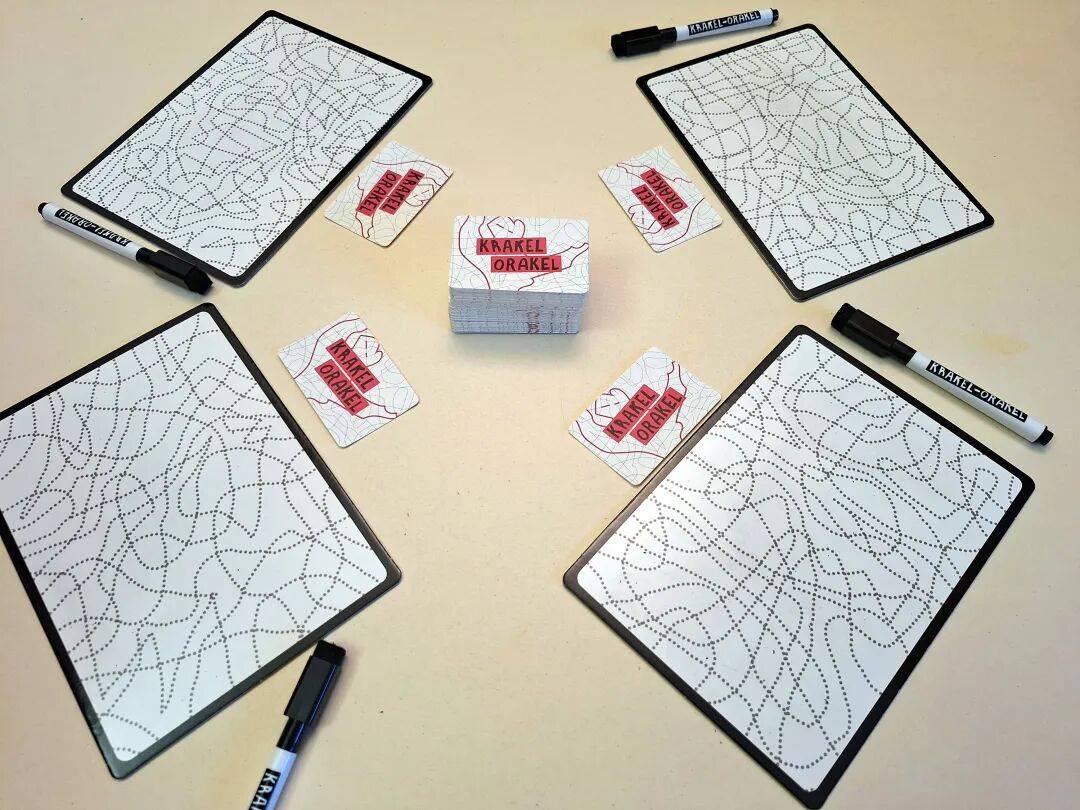 在所有玩家完成绘制后,需将面前的“神谕卡牌”与额外的卡牌摆放在公共区域,每位玩家轮流淘汰一张自己认为不在任何玩家画板上体现的“神谕卡牌”,由此《出神入画》将持续至多4轮,若期间玩家执行的错误淘汰次数少于玩家人数,即获得胜利。