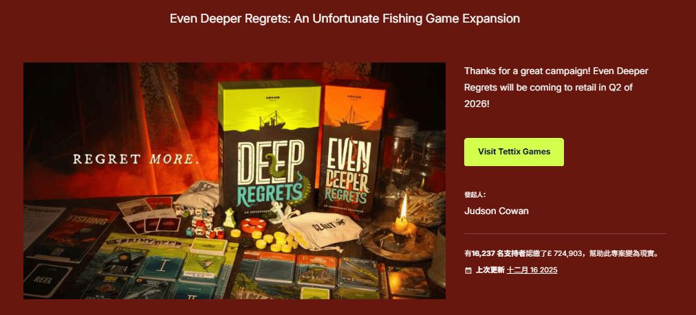 在基础大获成功后,《深海渔恨》设计团队很快开启了系列配套扩展《无尽深海渔恨》的众筹企划,并继续获得上佳表现:
