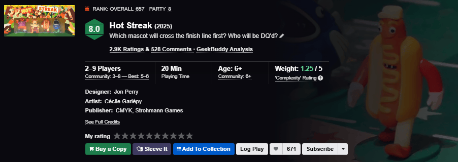 Hot Streak是一款由知名桌游设计师Jon Perry于今年推出的竞速游戏,玩家将作为一场赛事的观众,通过支持奔跑于赛场之上、代表不同队伍的吉祥物来获得财富与胜利: