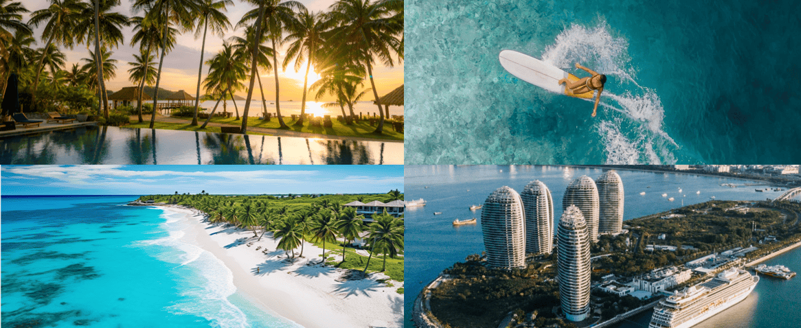 三亚设有海棠湾国际免税城、三亚海旅免税城、中服三亚国际免税购物公园和三亚凤凰机场免税店,四大免税购物中心,尽情选购全球一线.四大度假产品体系,顶级度假体验