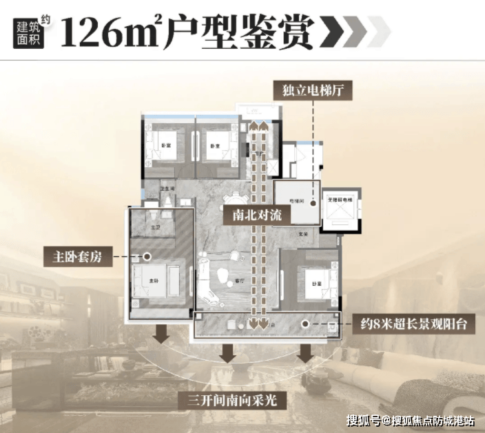 :总价约850万起,尊梯入户、南北对流,四开间朝南,适配三口之家进阶需求;