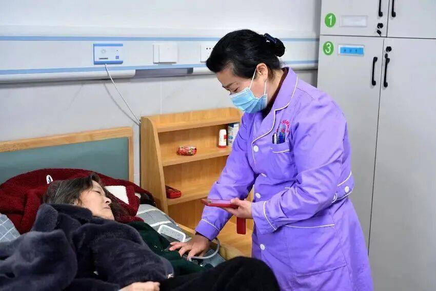 “这位老人行动不便,需要协助翻身。比如现在往右侧翻,每两小时翻一次身,这样既能让她舒服些,也减轻了我们的护理负担。”在姜秀兰的贴心护理下,老人僵硬的肢体逐渐舒展,脸上露出了舒适的神情。