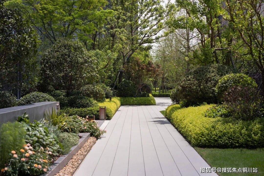 大部分开发商非常容易忽视的“园林步道”,同样能体现首开·第五大道的品质细节——低层花镜以丰富精巧的地被类植物组成,中层空间则是选用饱满葱郁的大小灌木,色叶植株以及乔木树群既为整体画面提供多彩的视野感官,同时也刻画出景观的天际轮廓。