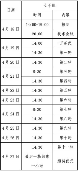 本次比赛男子组进行9轮瑞士制对决,女子组采用11轮单循环赛制,每天一轮,14:30开赛(女子组21日、24日上午8:00各有一轮),至27日结束。男子组每队由4名上场棋手及1名替补组成,女子组则为3名上场棋手及1名替补,上场台次固定;时限为每方90分钟,每步棋加30秒,计算国际等级分。